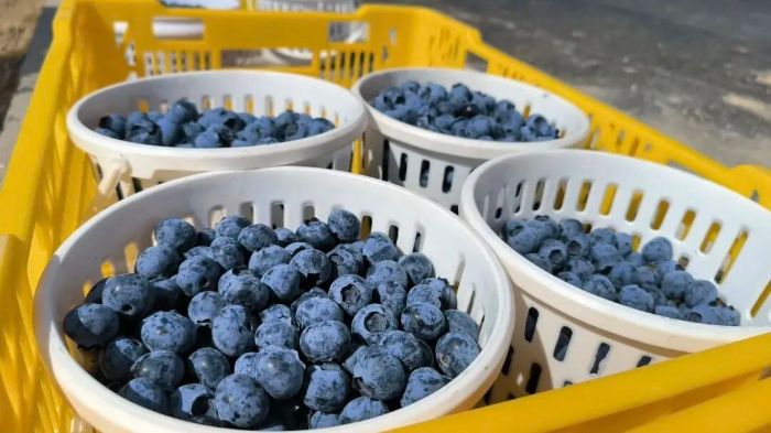 新鲜采摘下来的蓝莓肉质细腻饱满。仁和区融媒体中心供图