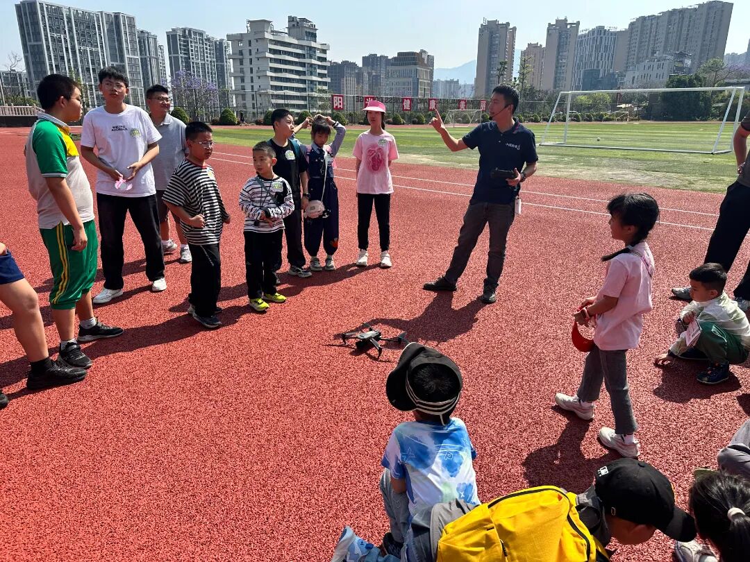 讲师现场拆解无人机的奥秘,解答“无人机为什么能悬停”“它如何检查高空铁塔”等疑问,静态观察+动态飞行结合,让孩子们近距离感受科技的力量,一颗向往蓝天、热爱科技的种子,在心中悄悄发芽。