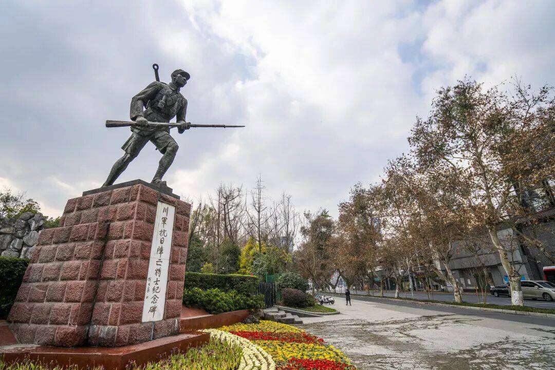 成都人民公园川军抗战塑像:缅怀川军出川壮举,传承铁血家国情怀。