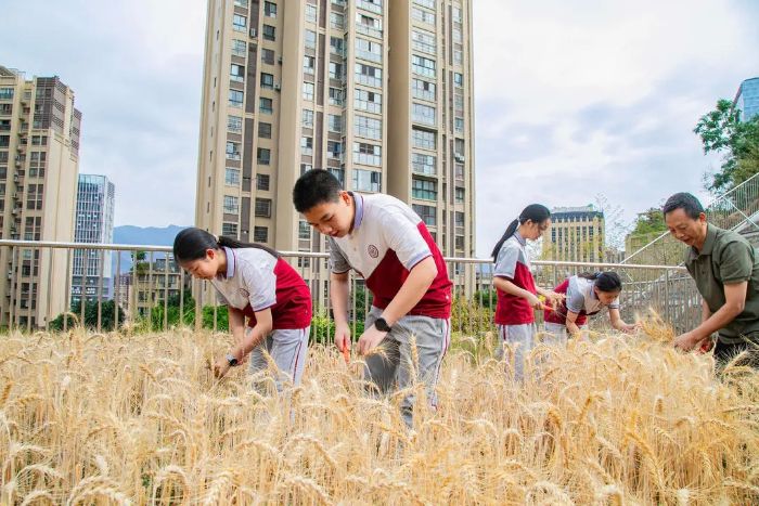 “小麦收割完成后,脱粒、磨粉等后续全流程都将由学生自主实践操作,让大家完整体验从田间到餐桌的全过程。”市花城外国语学校教师吴飞介绍,除了小麦,基地还种植了茄子、番茄、黄瓜等果蔬,待到果蔬成熟,学校计划于“六一”儿童节举办田园美食集市,让同学们利用劳动基地自产的食材,亲手制作菜籽油、包子、煎饼、茄饼等美食,在实践中感受劳动的价值与乐趣。