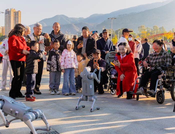 科技展区内,无人机、机器人、磁力传动摆、旋转银蛋、最速降线、声驻波等科普展品琳琅满目。“我们通过展示加体验的方式,让群众近距离感受科技魅力,尤其注重激发青少年的科学兴趣。”市科学技术协会工作人员毛亮量介绍。孩子们围在展品前,亲手操作、凝神观察,眼中写满好奇与向往。机器狗、下棋机器人体验区更是人气爆棚,市民马鹏与机器人对弈后连连赞叹:“太有意思了,这样的活动给过年增添了科技味。”