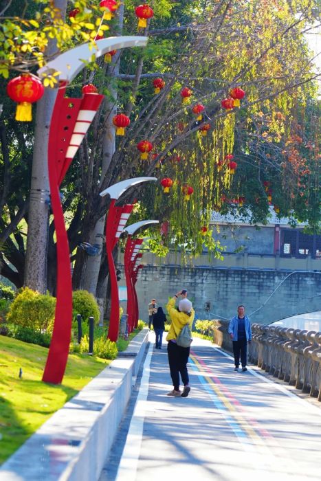 这段滨河步道,春节前刚刚开放。来的不只有蒋琼英。居住在春天花园小区的何杰和伙伴们,也把排练舞蹈的场地从广场搬到了这里。河水作背景,绿植当观众,她们跳得比往常更尽兴。“环境打造得像花园一样,心情特别舒畅。”何杰说。
