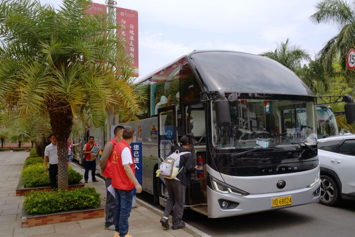 考试结束,考生乘坐专车离开考点前往攀枝花南站 攀枝花市融媒体中心记者 车东洪/摄