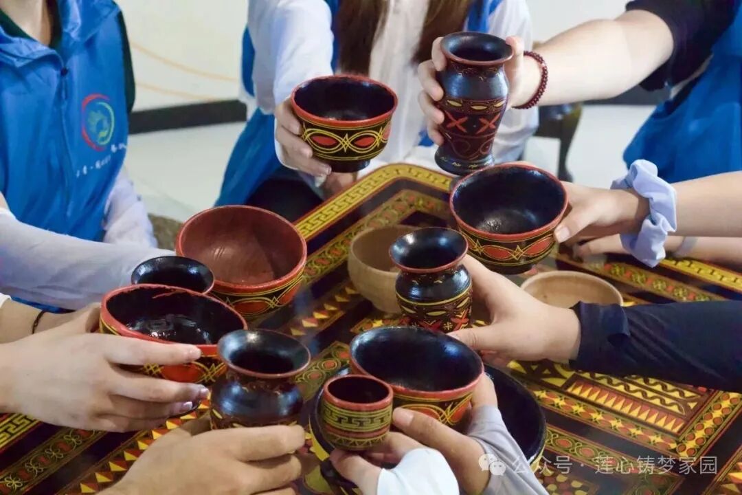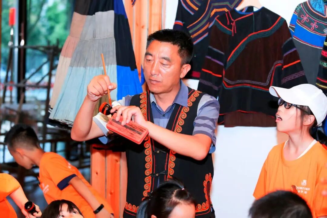 早餐后非遗互动,文化深触,参观【彝族语言文字展览馆】和【彝族漆器展览馆】,观摩国家级非遗传承人演示彝族漆器纹饰绘画,在传承人指导下亲手绘制简易漆器纹饰,参与“母语互动角”,跟随老师学习彝文及彝语。