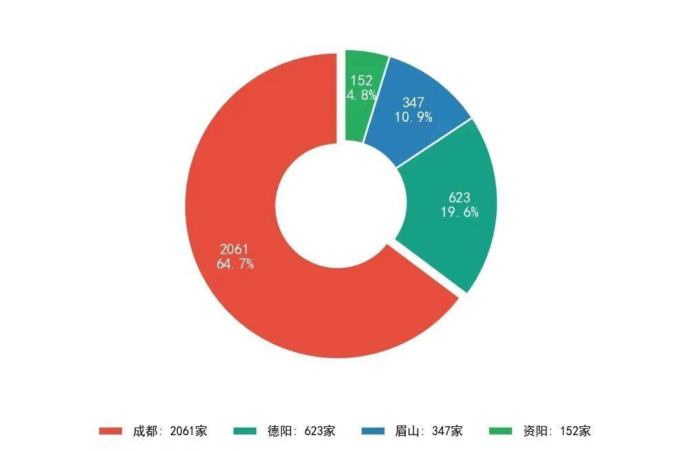 从参与主体分布来看,成都作为中心城市,核心引领带动作用持续增强,共有2061家企业参与跨市合作,占总量的64.7%,稳居都市圈跨市合作的核心引擎地位;德阳、眉山、资阳分别有623家、347家、152家企业参与跨市合作,占比分别为19.6%、10.9%、4.8%,全域经营主体积极融入都市圈产业协作网络,协同发展的合力持续凝聚。