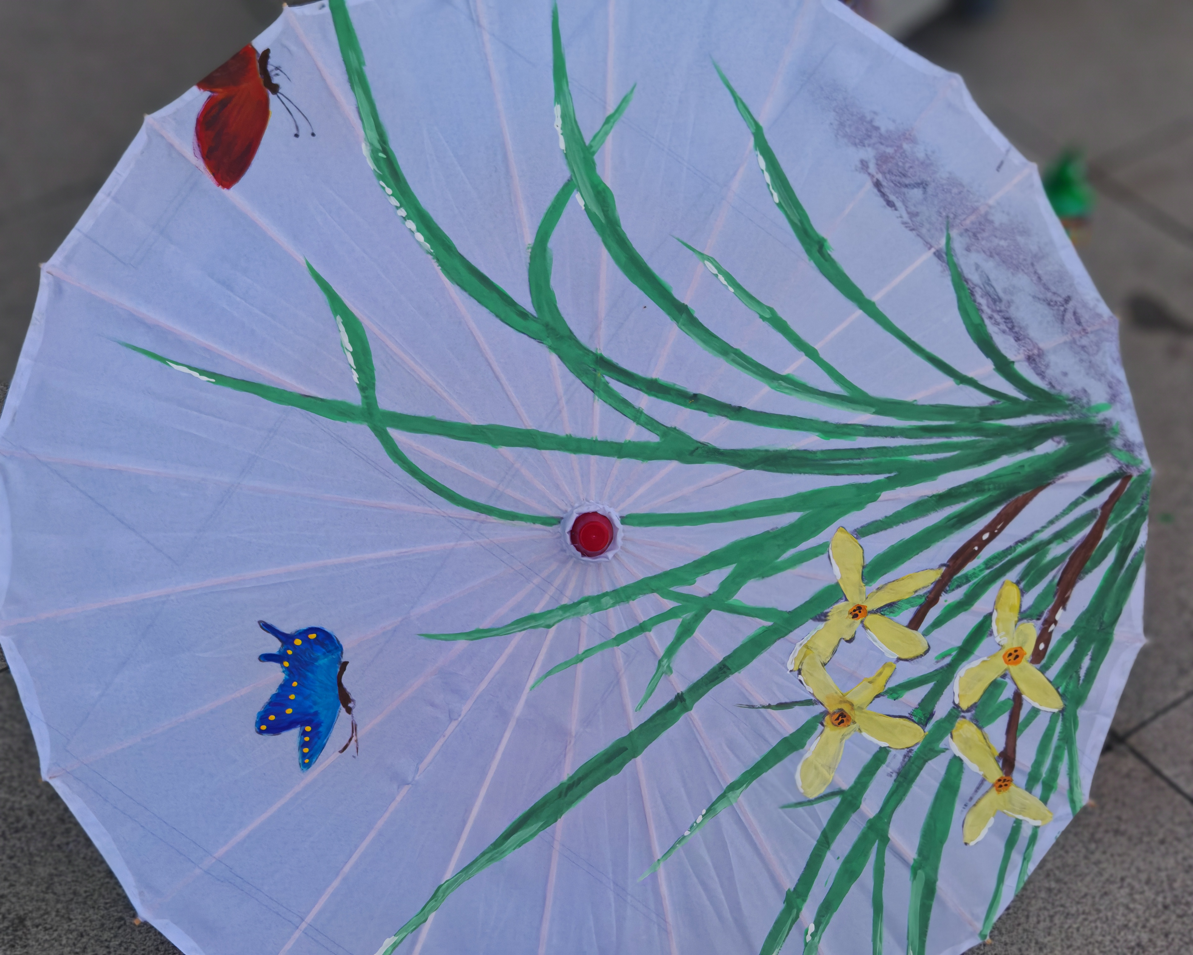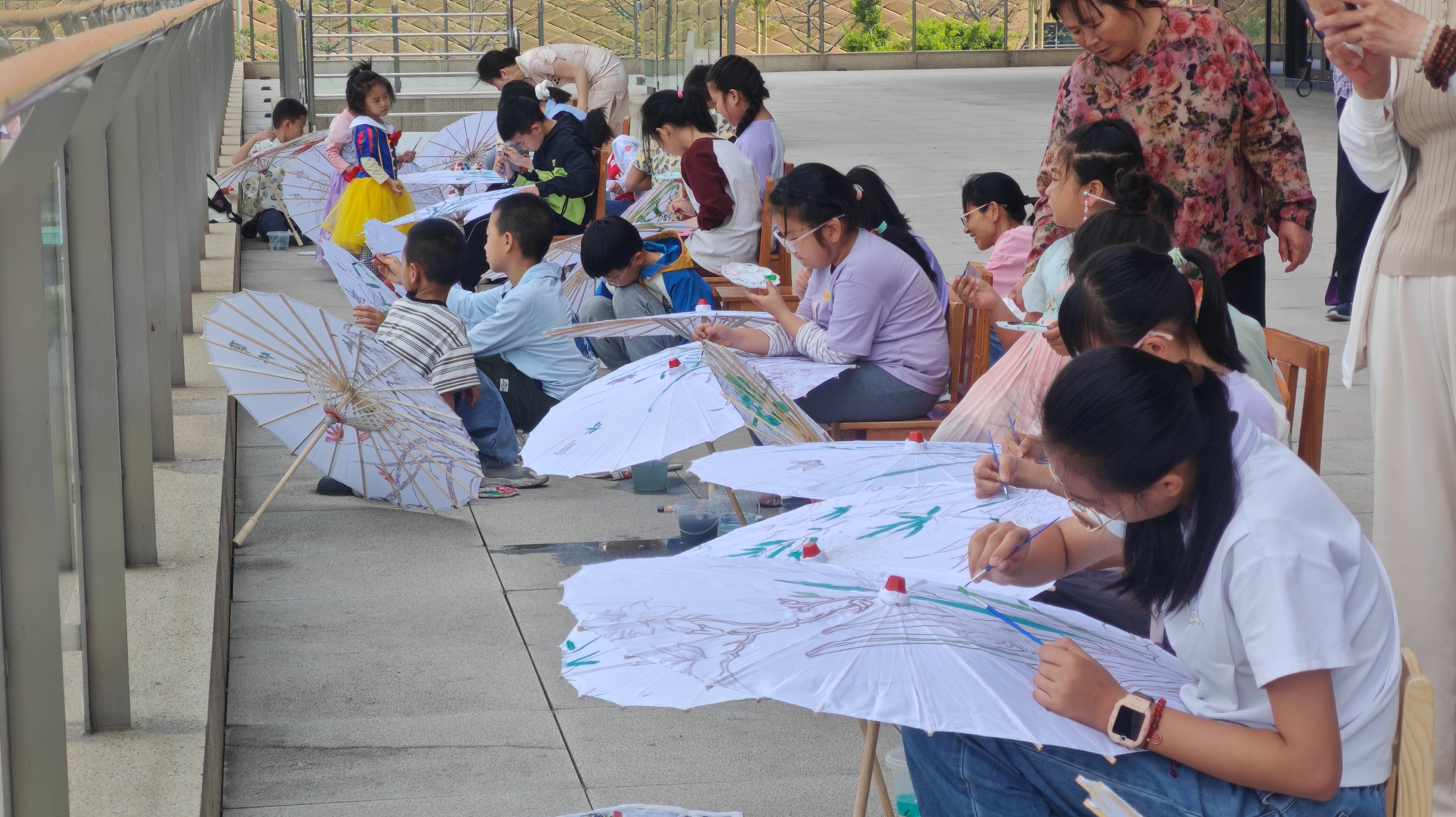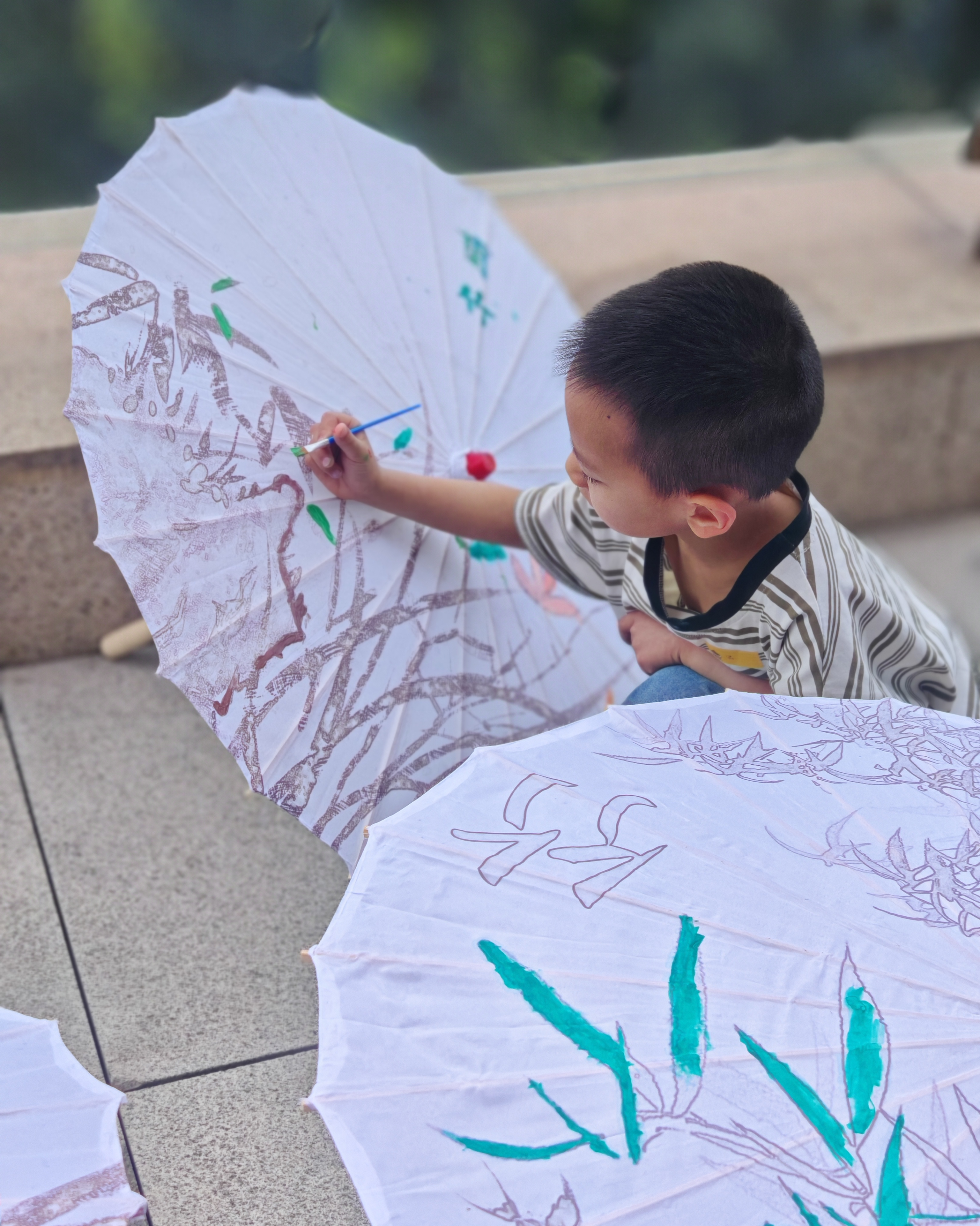 孩子们一笔一画 把春天和传统民俗画进了伞里
