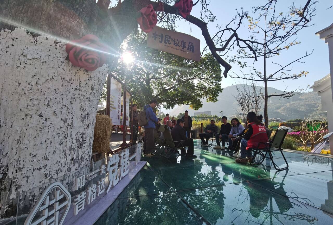 为了真正达到开门议事的效果,第二次“村企民联席会”的会场从村部会议室搬到了村口一棵百年红椿树下的“村民议事角”,这里是一片四处可达的开阔院坝。