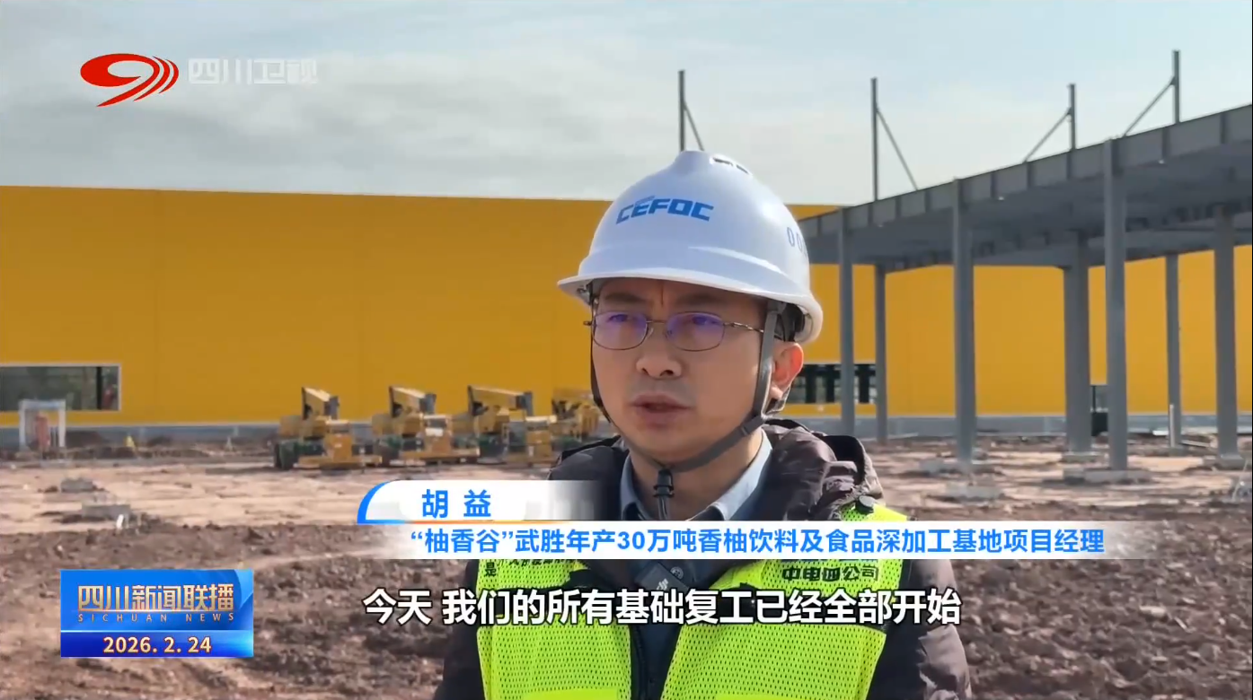 “柚香谷”武胜年产30万吨香柚饮料及食品深加工基地项目经理 胡益:我们还安排了分批次复工,今天我们的所有基础复工已全部开始,明天大型机械将全部进场。