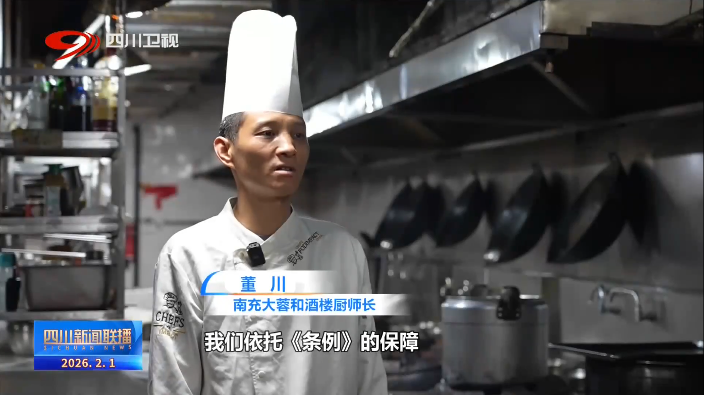 南充大蓉和酒楼厨师长 董川:我们依托《条例》的保障,酒店建立了“节气菜”研发的机制,全年创新菜品达30余款,我们通过“老味新做”实现了品质的升级。