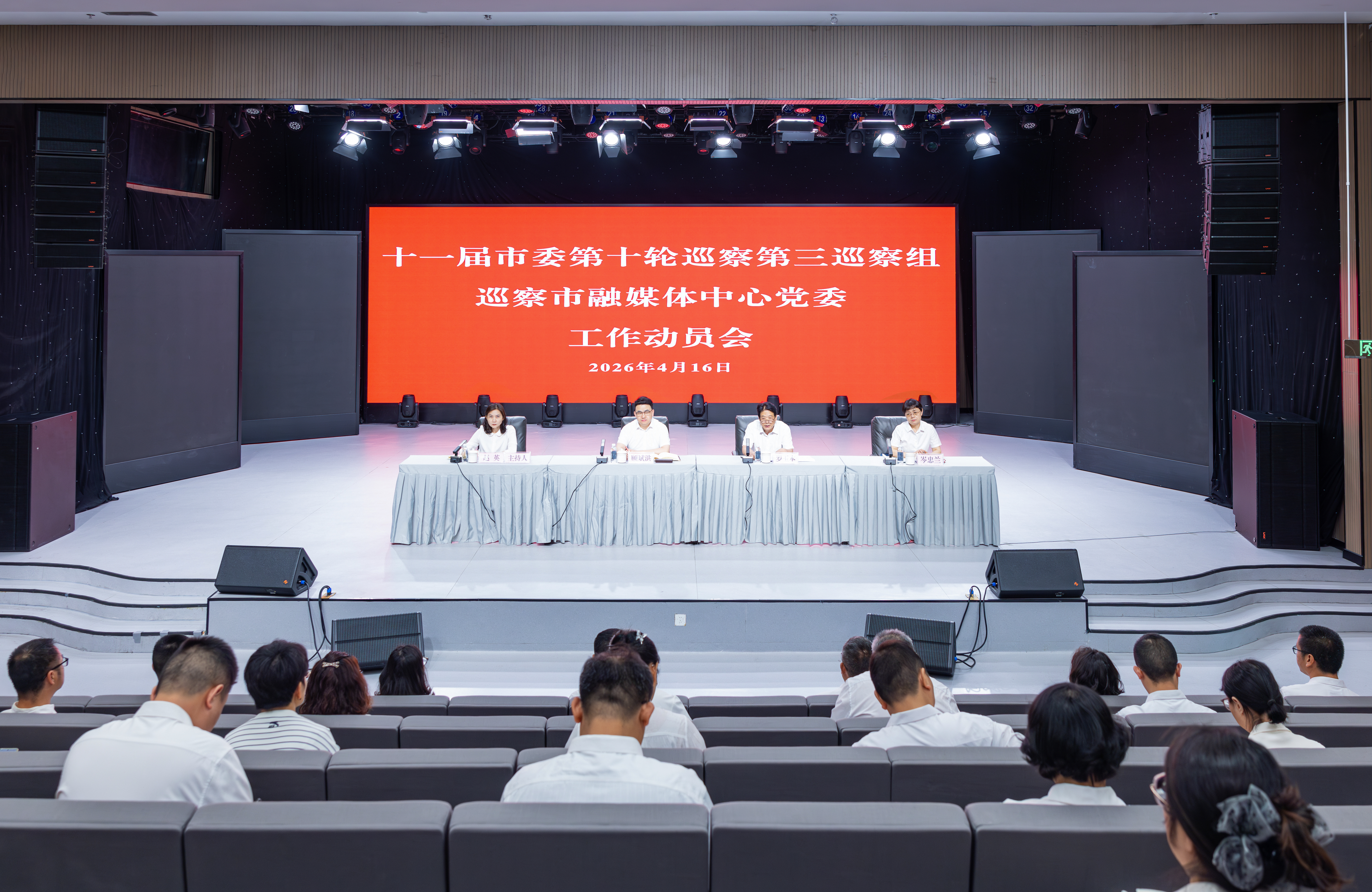 根据市委巡察工作统一部署,4月16日,十一届市委第十轮巡察第三巡察组巡察市融媒体中心党委工作动员会召开。市纪委副书记、市监委副主任、市委巡察工作领导小组成员顾斌洪作动员讲话,市委第三巡察组组长罗玉本通报巡察任务和总体安排,市融媒体中心党委书记、主任赵英主持会议并作表态发言。