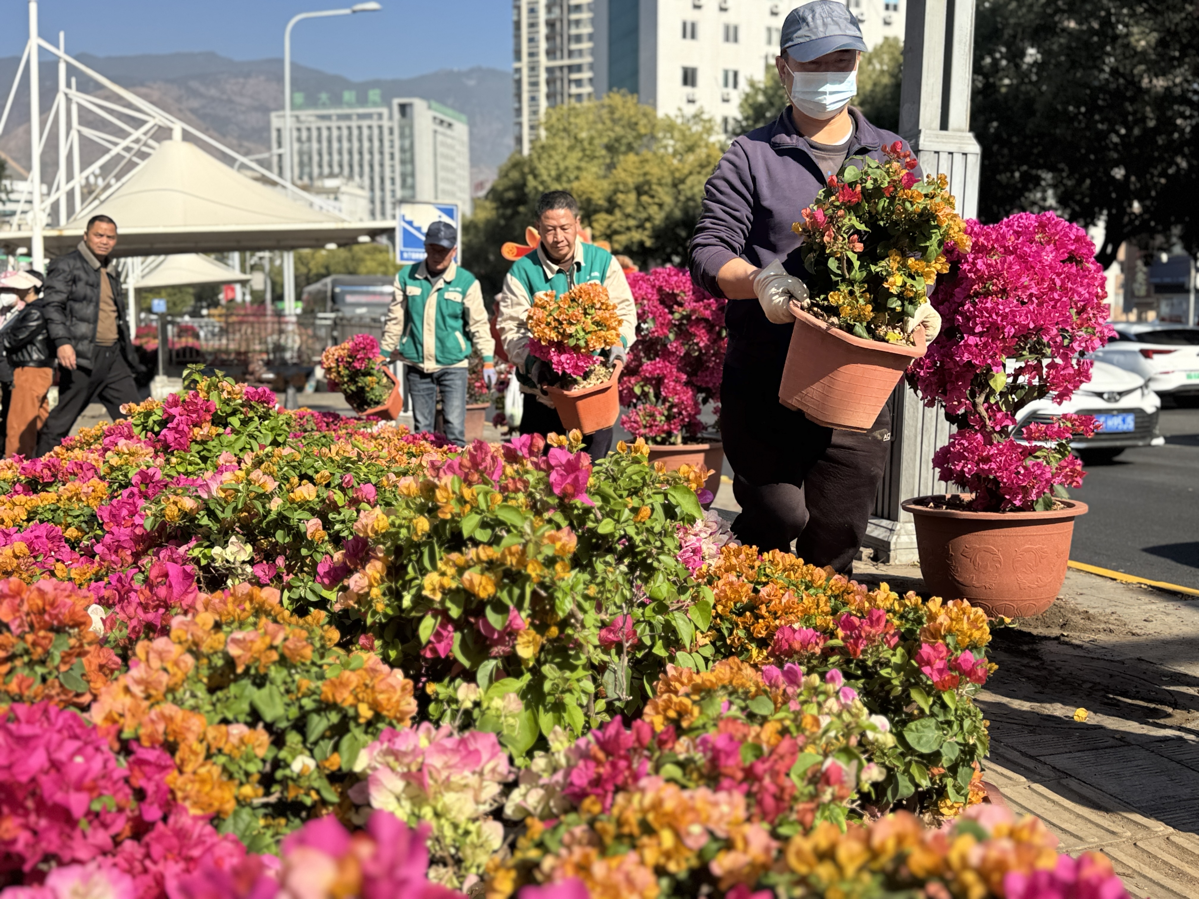 自1月26日起,该中心对三线大道、攀枝花大道东段等主要道路隔离栏花箱内,因老化长势不良及已过盛花期的三角梅进行全面更换,并在竹湖园公园以“生肖贺春 花韵传情”为主题开展布置。工作中坚持“厉行节俭、循环利用”原则,所用花卉均来自园林物资循环站自主繁育,搭配春节主题小品,在控制成本的同时,实现生态循环与景观提升双赢。