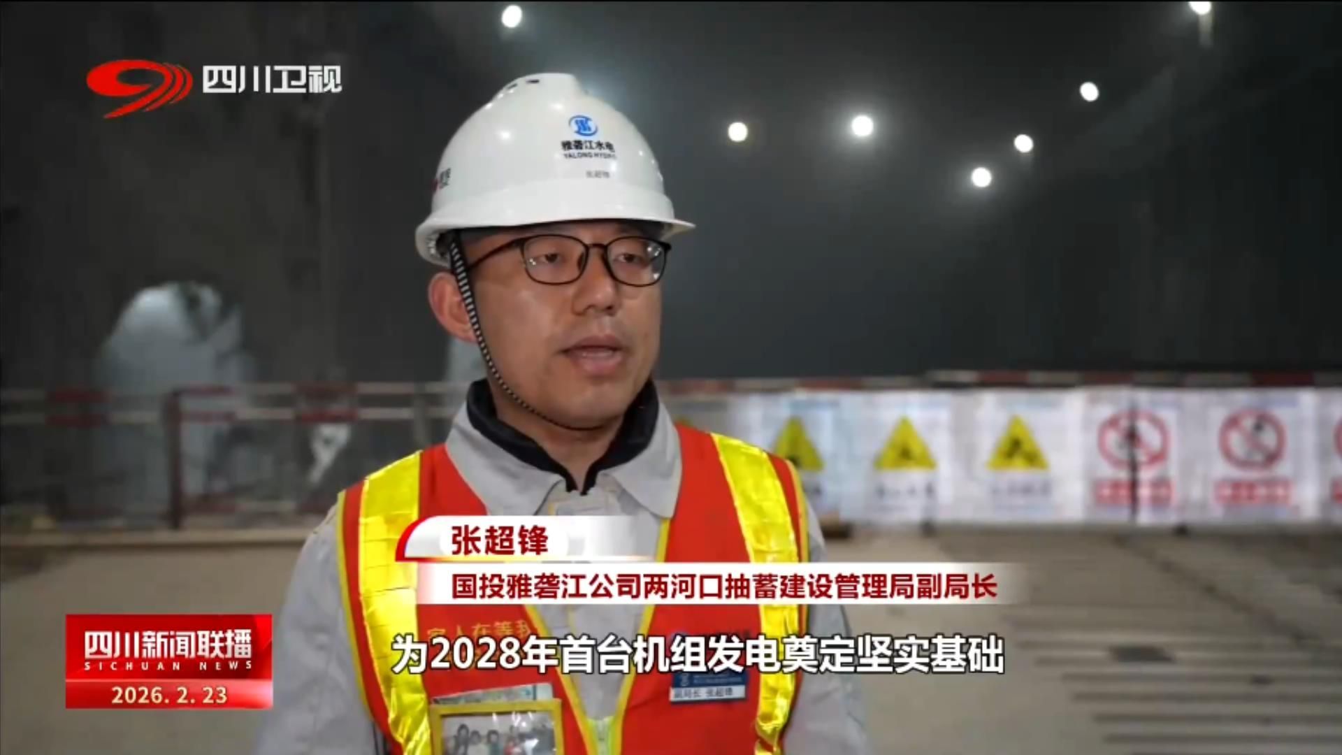 国投雅砻江公司两河口抽蓄建设管理局副局长 张超锋:地下厂房是电站发电的“动力心脏”。抽蓄厂房开挖完成,标志建设转入机电设备安装阶段,为2028年首台机组发电奠定坚实基础。这个“超级充电宝”完全建成后,将与周边的风电、光伏电站协同运行,可为700万千瓦的新能源项目提供灵活、稳定的调节支撑。