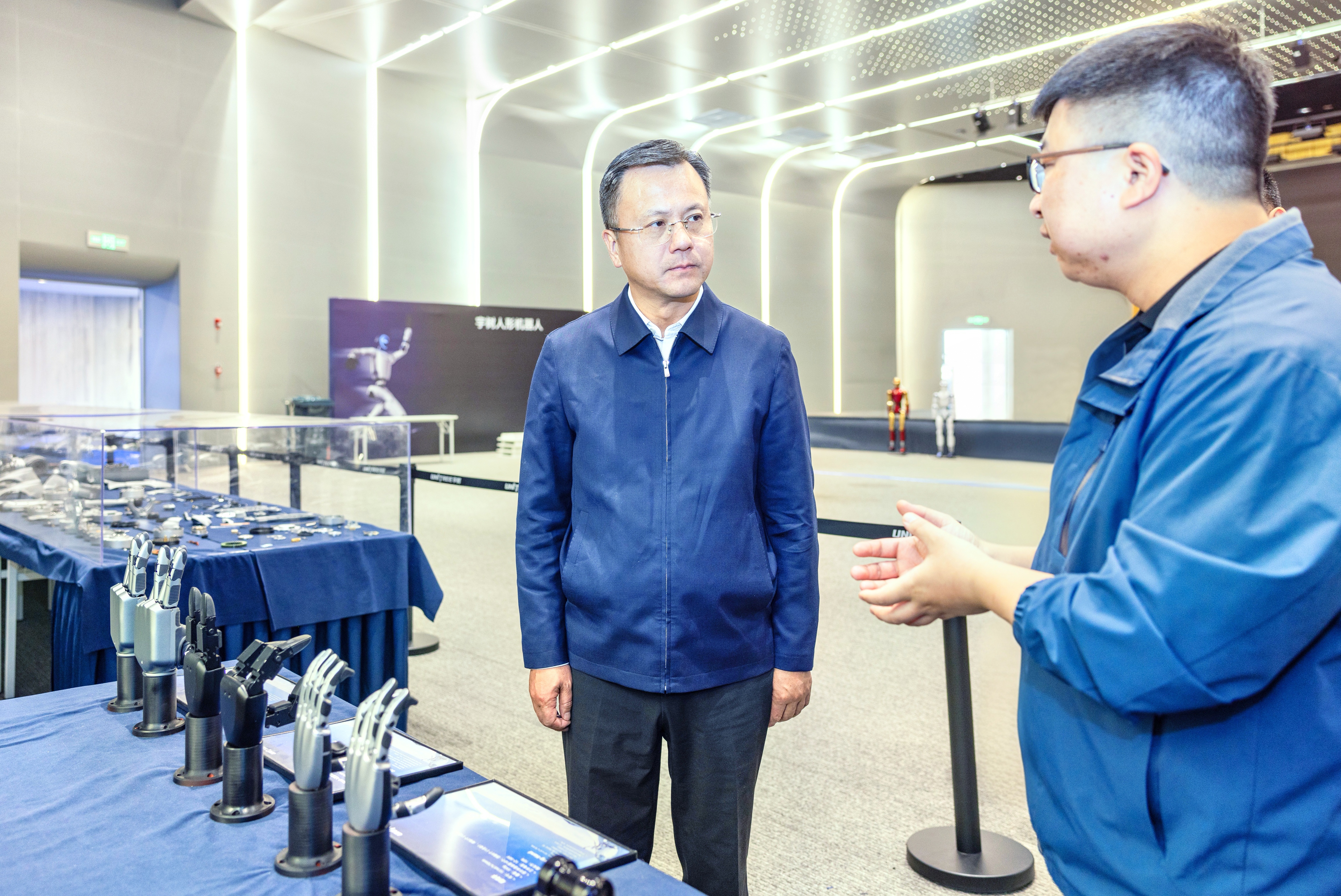 市委书记吴群刚在宇树科技股份有限公司实地了解企业科技创新、产品研发、生产销售等情况。市融媒体中心记者 莫贯/摄影