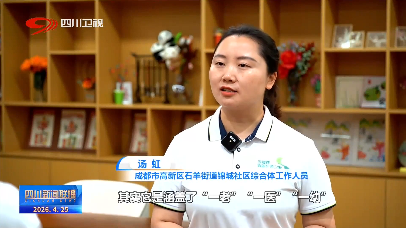 成都市高新区石羊街道锦城社区综合体工作人员 汤虹:在综合体中,其实它是涵盖了“一老”“一医”“一幼”全方位、一站式的服务,让周围的老年人,以及0到3岁的小朋友,在“不离社区、不离家”,能够接受我们专业的对口服务。