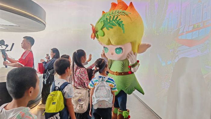 走进展示馆,苏铁主题创意设计与春日氛围相融。入口处的巨幅主题打卡墙成为热门点位,往来游客纷纷驻足拍照留念,现场快门声不断。萌趣可爱的“花城苏小铁”NPC成为全场“团宠”,圆润的造型、活泼的互动方式,瞬间拉近了与游客的距离。
