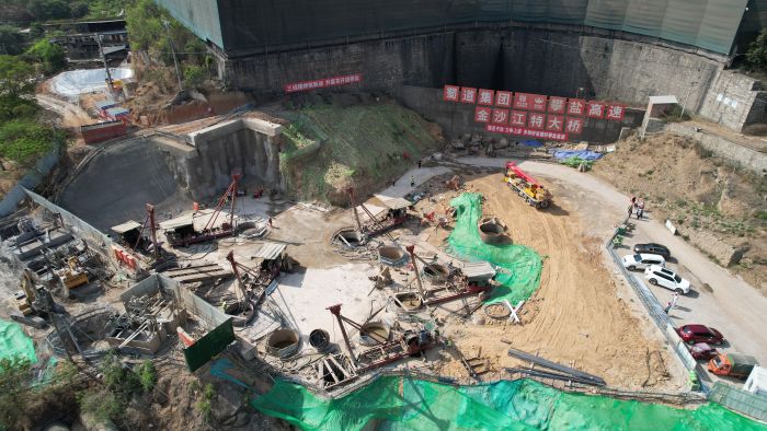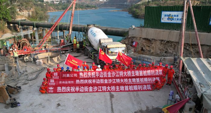 4月20日,记者在攀盐高速TJ13标段金沙江特大桥施工现场看到,随着最后一方混凝土顺利注入桩孔,攀盐高速控制性工程——半边街金沙江特大桥主墩首桩顺利完成浇筑,标志着这座国内主跨变宽幅度最大的双向四车道高速公路斜拉桥,正式进入主体工程实质性施工阶段。