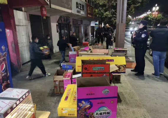 2025年1月23日,仁和区应急管理局联合公安部门在辖区一便利店查处一起非法经营烟花爆竹案件,执法人员依法收缴全部产品并转移至专用库房存放。