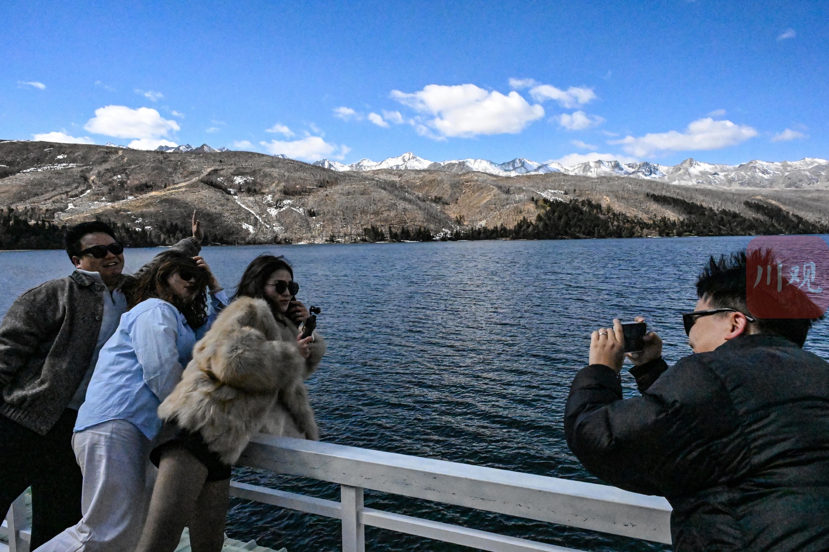 2026年3月1日,游客在四川省甘孜州康定市木格措景区观光旅游。