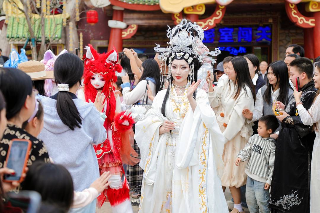 4月1日至6日,梦回青城剧场每晚会上演无人机光影大秀,还有数千盏孔明灯同时放飞,再现上元灯会盛景,更有百位“白娘子”空降景区,与游客零距离互动。此外,小镇还推出“一票玩三天”的票务政策,游客购票后可在三日内无限次畅玩。绵阳的游客赵先生表示,这种“一票玩三天”的模式性价比很高,一家三口能深度体验巴蜀文化与沉浸式演艺,游客在这里可以慢下来、住下来、沉浸其中。