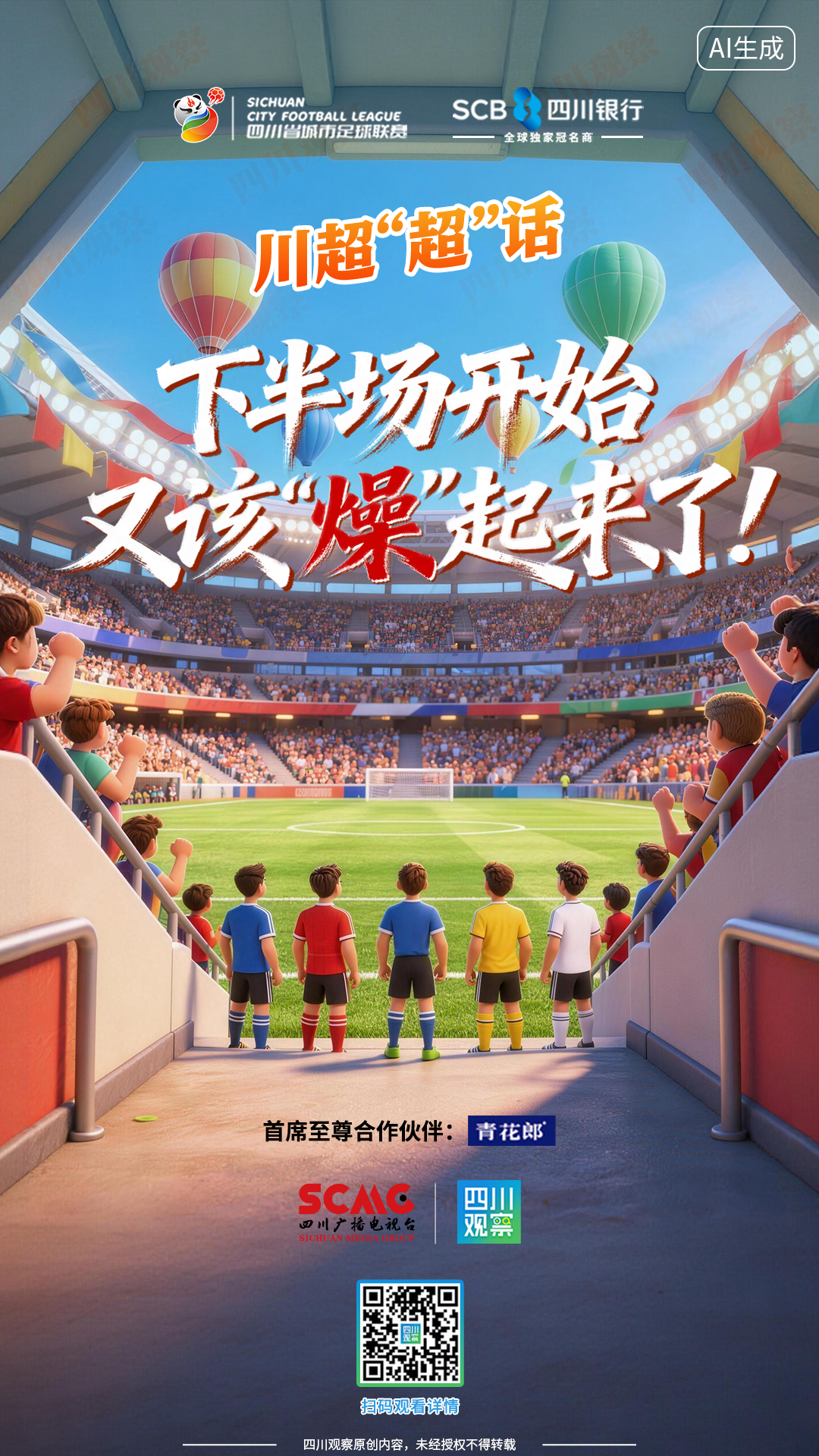 从庄严的会场到热闹的球场,“足球”这项世界第一运动,从未在四川有着如此重要且不可替代的地位。从上世纪九十年代的“金色狂飙”到如今一场球与一座城的“双向奔赴”,每个“足球人”“川超人”一定都会由衷感到骄傲。我们一起用“激情”创造“流量”,用“流量”转化“留量”,又让“留量”升格为经济的“增量”。
