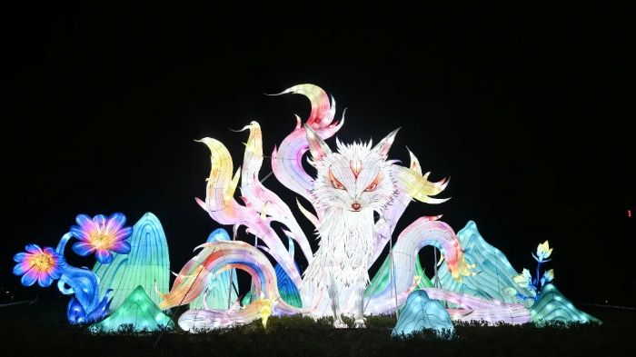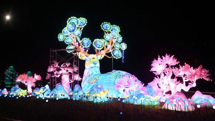 夜幕降临,璀璨灯火点亮整片花海,为市民游客呈现一场融合非遗彩灯艺术与本土风情的沉浸式光影盛宴。
