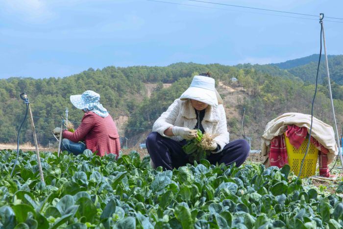 联合村村民在田间采收蔬菜 杨述钧/摄