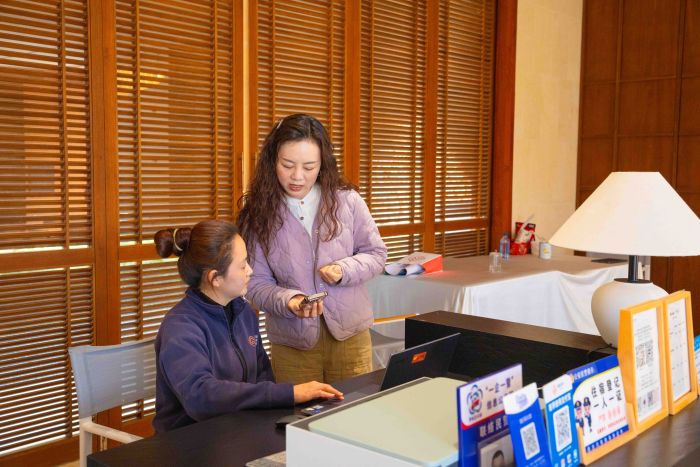工作人员交流当地客人入住情况 杨述钧/摄