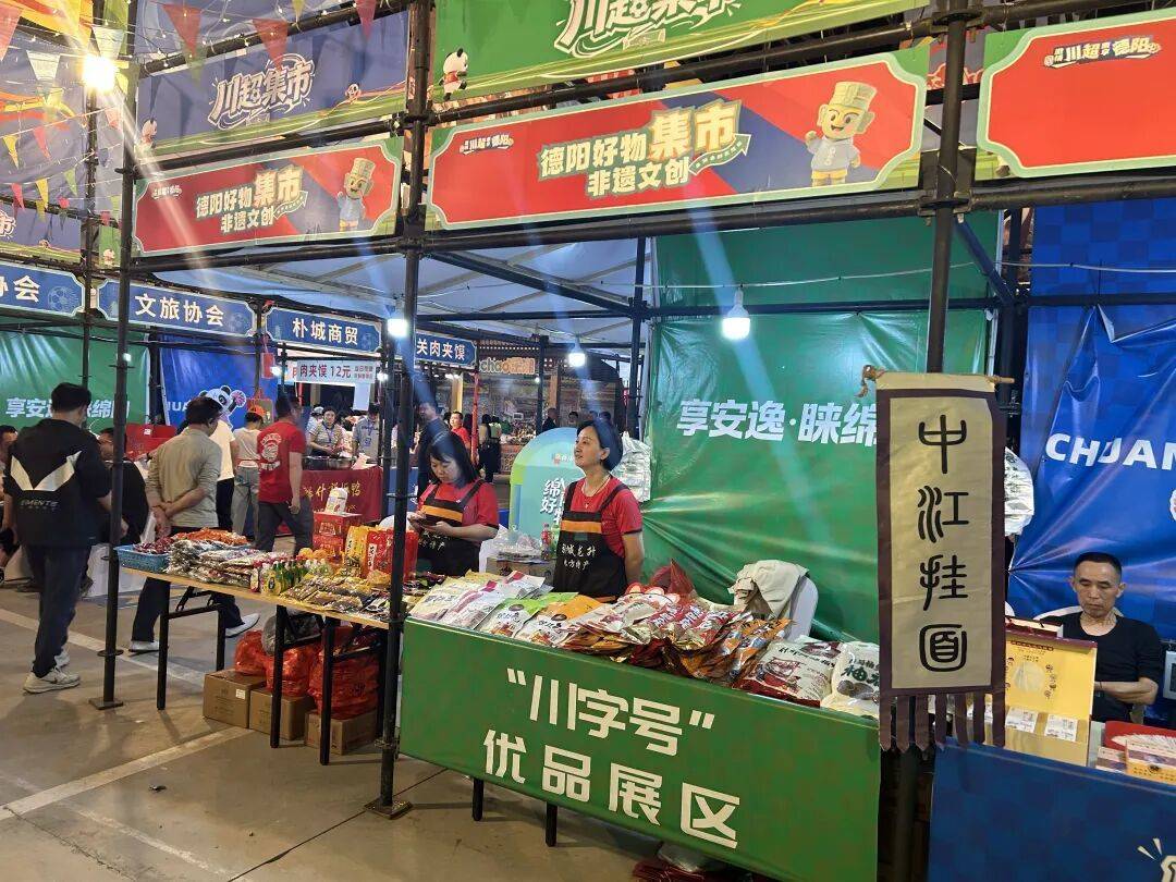 当天,赛场外的球迷广场化身为 “德阳好物市集” ,三星堆的“顶流”文创、细如银丝的中江挂面等组团亮相。“我们的面细得能穿过针眼,而且是空心的!”现场工作人员展示着挂面的神奇韧性,“这就像咱们四川人的性格,外表柔软,内心刚强。”