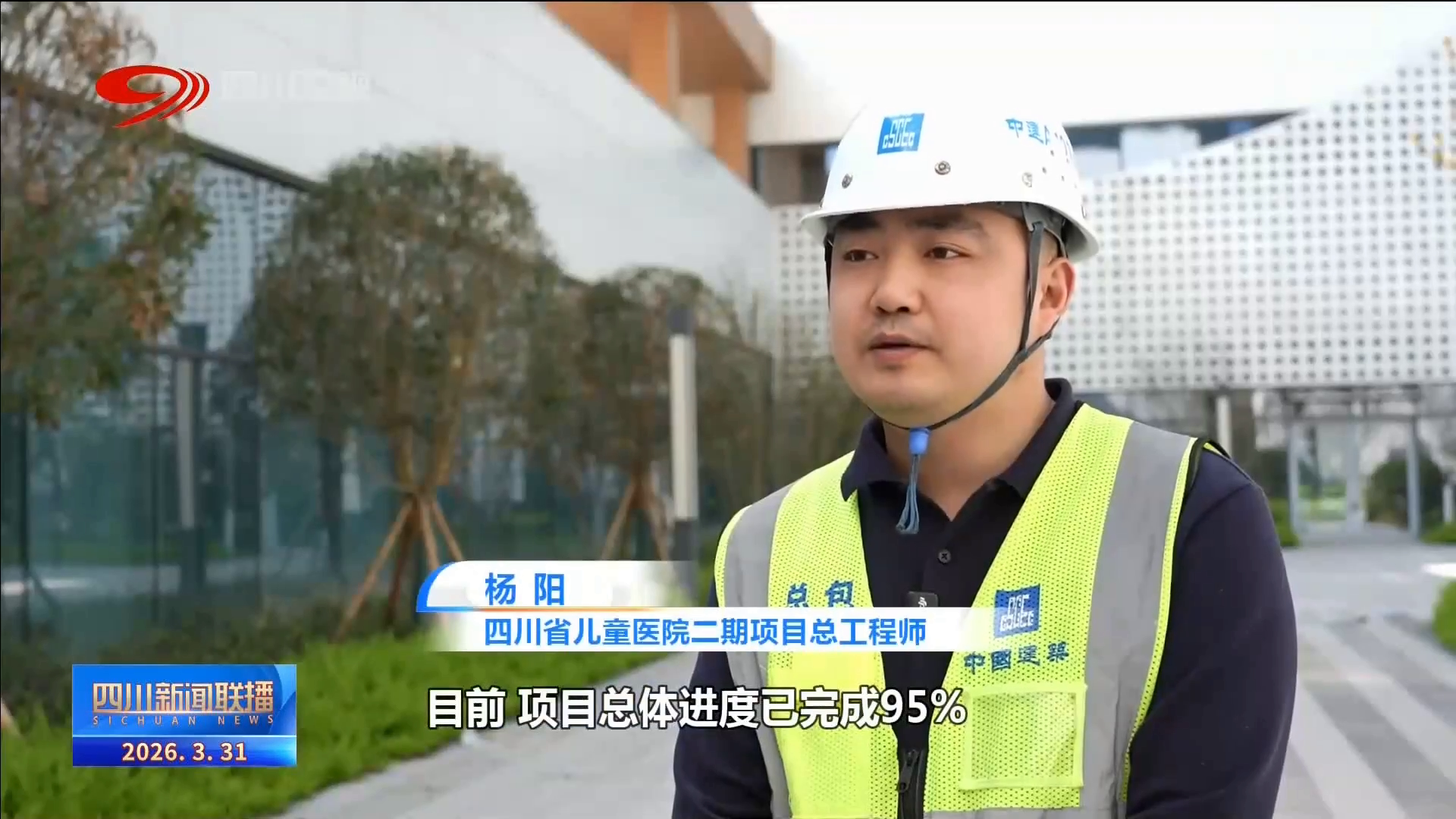 四川省儿童医院二期项目总工程师 杨阳:目前,项目总体进度已完成95%,室内精装修、设备机房建设等都已基本完成,现场组织120余名工人全力冲刺竣工移交相关收尾工作。
